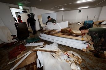 행안부, 집중호우 지역주민의 일상 복귀·피해 복구 총력 지원 행정안전부는 전국적인 집중호우에 따른 피해 복구와 이재민 구호를 위해 지자체가 활용할 수 있는 수단을 최대한 동원할 수 있게 지원하겠다고 21일 밝혔다. 이는 이번 집중호우가 단기간에 특정 지역을 가리지 않고 전국에서 발생해 복구 기간에 이재민의 불편함을 최소화하고 조속히 일상생활로 복귀할 수 있도록 지원하기 위함이다. 21일 집중호우로 침수 피해를 본 광주 서구 마륵동 한 가구 백화점에서 군장병들이 폐가구들을 치우고 있다.(ⓒ뉴스1, 무단 전재-재배포 금지) 먼저, 행안부는 구호물품과 임시 주거시설 지원 등 긴급한... 2025.07.21 행정안전부 -